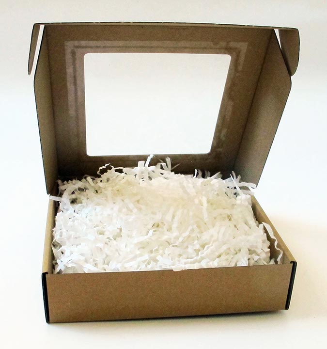 - Pudełka prezentowe z wypełnieniem – w zestawie z wiórkami papierowymi w kilku kolorach do wyboru.
