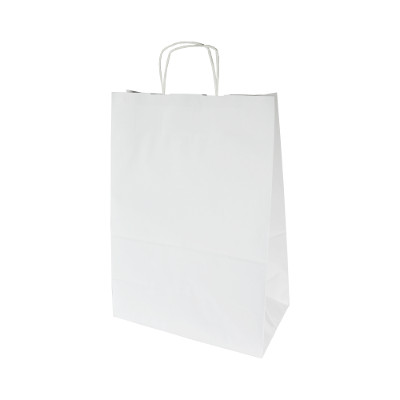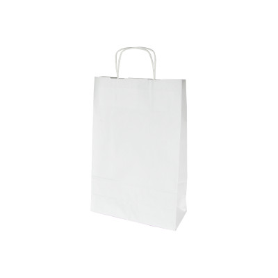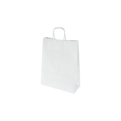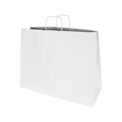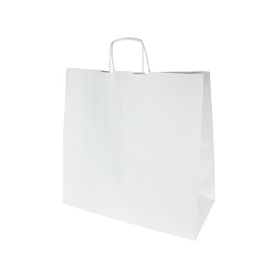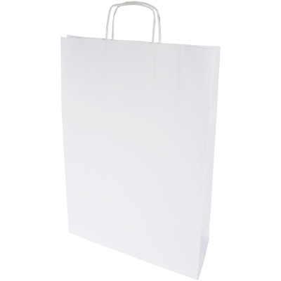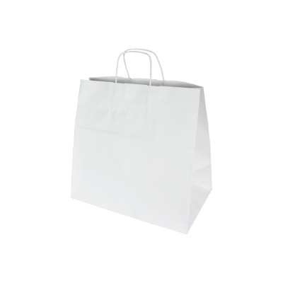 Eleganckie, wytrzymałe torby klockowe wykonane z białego papieru. Idealne do pakowania produktów w sklepach, na konferencjach i targach.